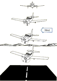 - Par vent de travers, j'approche en crabe et je demeure crabé même lorsque je suis en parallèle avec la piste. Dans les tous derniers instants, 2-3 secondes avec que l'avion décroche, je me remets dans l'axe de piste avec les palonniers. Quand j'ai fait ma formation, j'utilisais les ailerons pour me remettre dans l'axe de piste, mais je trouve ça plus facile avec les palonniers. (Il faudrait que je vérifie avec un insctructeur à un moment donné, s'il est d'accord avec ma nouvelle technique). Il y en a qui approche en glissade au lieu d'en crabe; je préfère en crabe (il y en a qui aiment mieux les blondes que celles aux cheveux noirs; question de gout